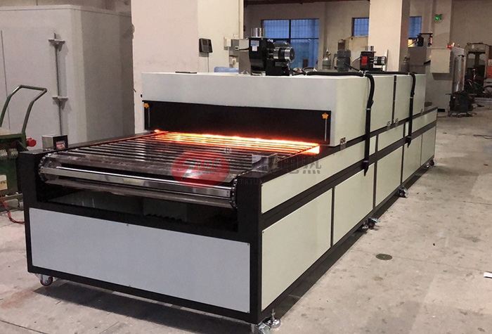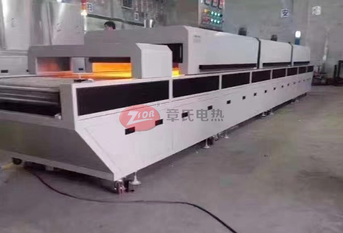 1、爐部分外形尺寸:線體總長12米,網帶寬1.0米,總高1.6米,出料部分長1米,烘干部分長10米,分為5段,進料部分長1米,冷卻區為0.4米,線體大梁支架和箱體外殼采用2.0㎜厚冷板折彎而成,整機外殼高溫靜電噴塑(非普通油漆)耐腐蝕易清洗,機架用50×50㎜方通焊接而成,配16㎜調節腳杯。